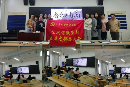 9月23日下午,公共课教学部直属党支部在教学楼110室举办“铭记历史,砥砺前行”主题党日活动,纪念抗战暨世界反法西斯战争胜利80周年。组织委员段燕燕主持,强调抗战完全胜利彰显民族尊严与世界意义。全体党员集中观看《南京!南京!》,沉浸感受山河喋血、军民不屈,接受精神洗礼。观影后,大家结合立德树人使命热议:把抗战故事化作课堂案例,把爱国情、强国志融入公共课教学,培养堪当复兴大任的时代新人。活动进一步激发爱国热情与历史担当,党员誓将抗战精神转化为奋进动力,立足岗位建功,为学校发展贡献智慧与力量。