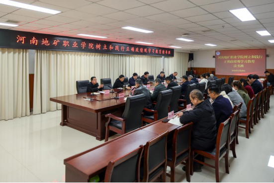 为深入学习贯彻习近平总书记关于树立和践行正确政绩观的重要论述,引导党员干部校准思想航向、规范履职行为,3月18日至19日,河南地矿职业学院举办树立和践行正确政绩观学习教育专题读书班。学校领导班子成员、各党总支(直属党支部)书记、学习教育工作专班各工作组组长参加学习。